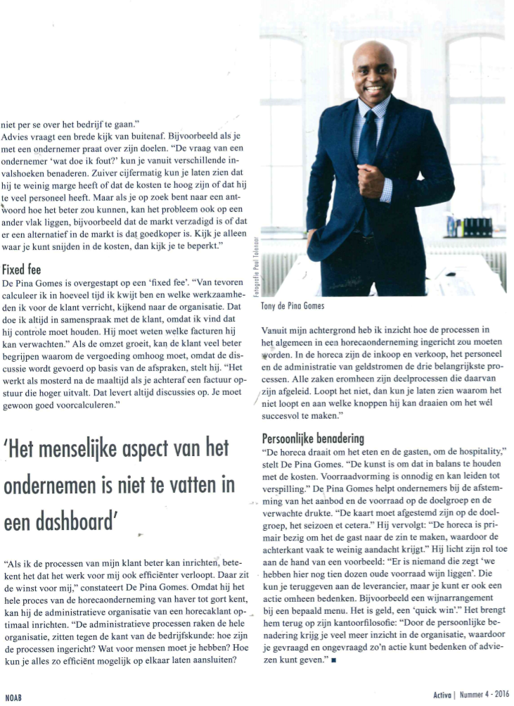 Met een achtergrond in de horeca – van de werkvloer tot de boekhouding – weet hij precies hoe processen lopen en waar ondernemers tegenaan lopen. “In de horeca draait alles om marges. Iedere euro telt,” zegt hij. Die kennis vertaalt zich naar gerichte adviezen en slimme optimalisaties.